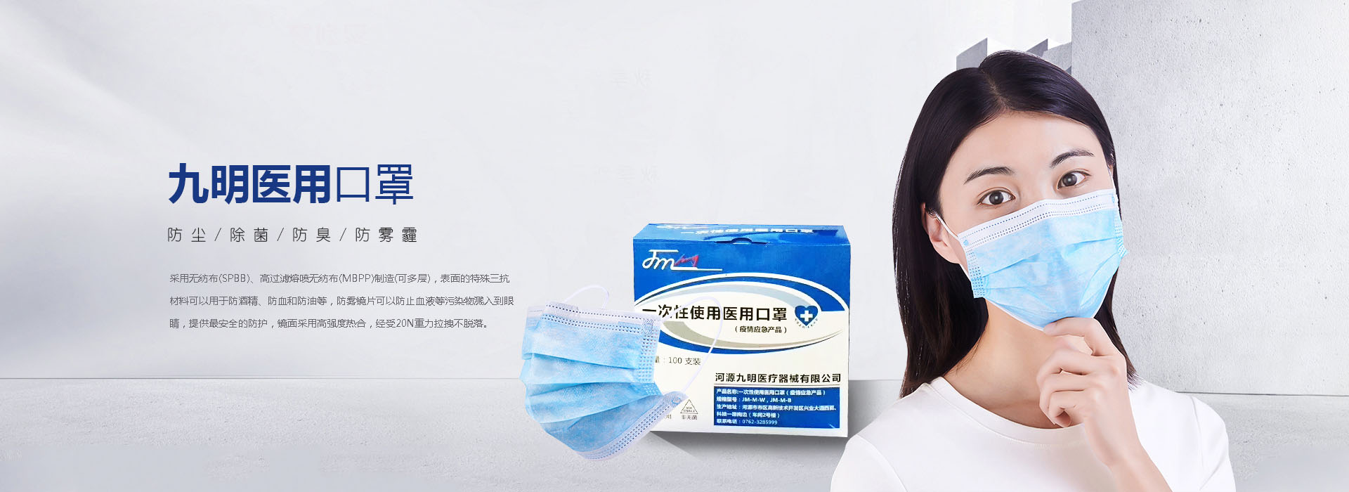河源九明醫(yī)療器械有限公司位于河源國(guó)家高新區(qū)科技一路,為廣東九明制藥有限公司屬下全資子公司,公司現(xiàn)建有口罩生產(chǎn)車(chē)間、防護(hù)服生產(chǎn)車(chē)間,均為10萬(wàn)級(jí)無(wú)菌潔凈車(chē)間。現(xiàn)主要生產(chǎn)一次性醫(yī)用口罩、醫(yī)用外科口罩、醫(yī)用防護(hù)口罩及醫(yī)用防護(hù)服。